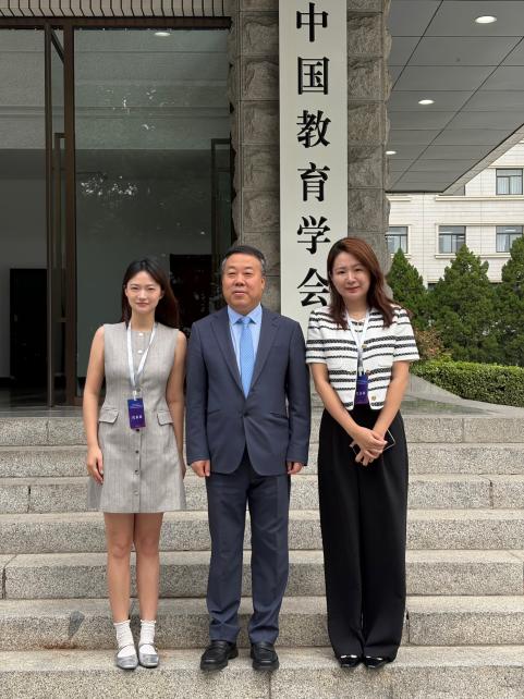 ▲陈昀怡、刘杨老师与中国民办教育协会会长刘林合影