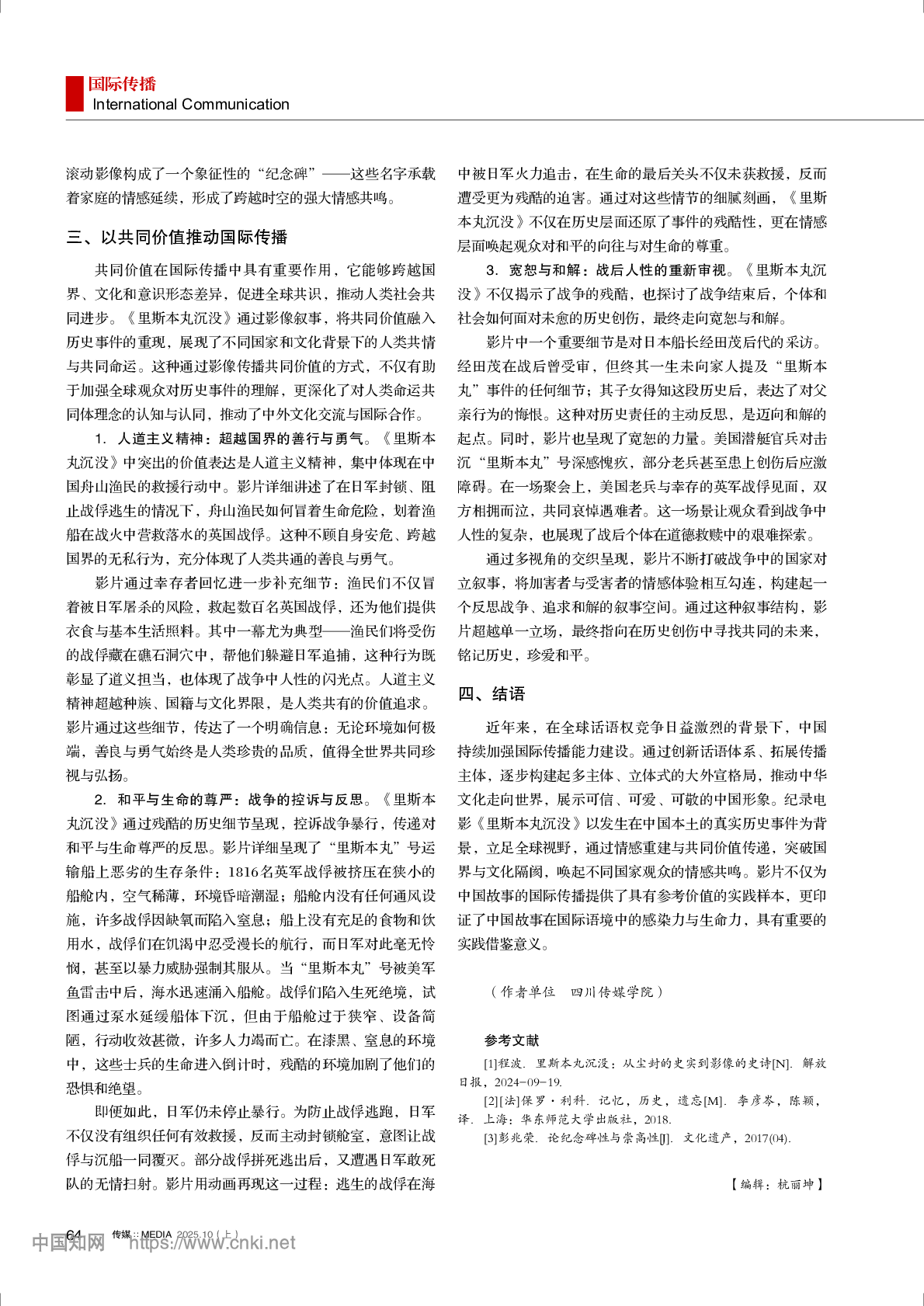 刘光英 | 纪录电影《里斯本丸沉没》讲好中国故事的多元叙事逻辑